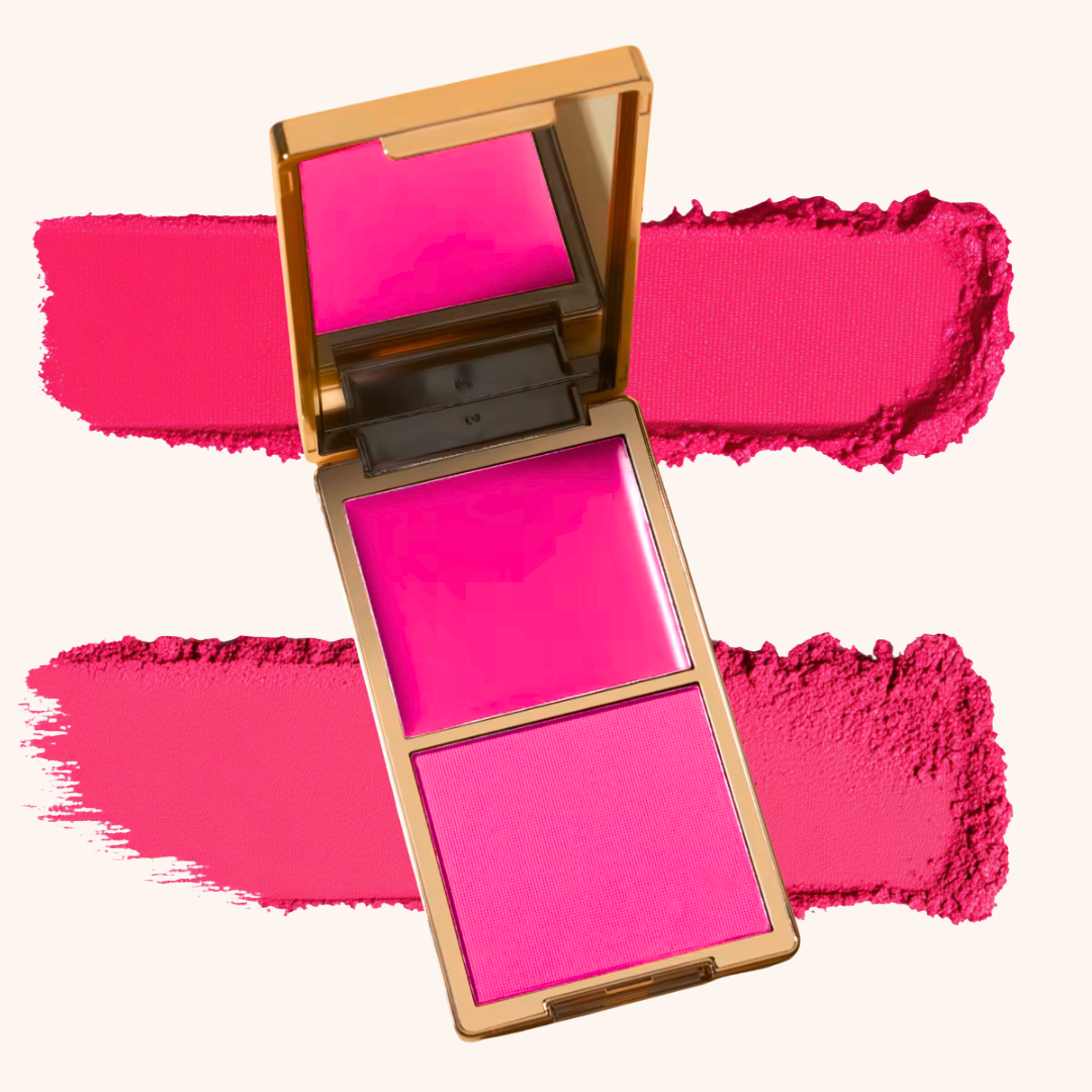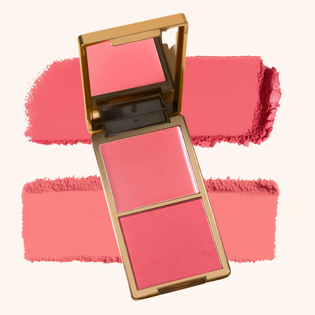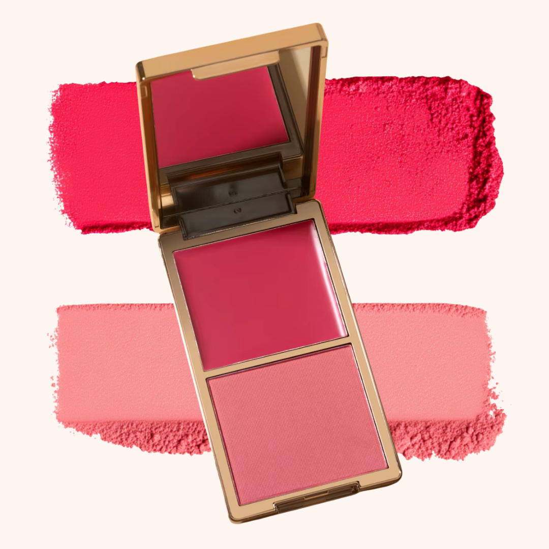 Cream + powder blush that blends seamlessly — no patchiness.