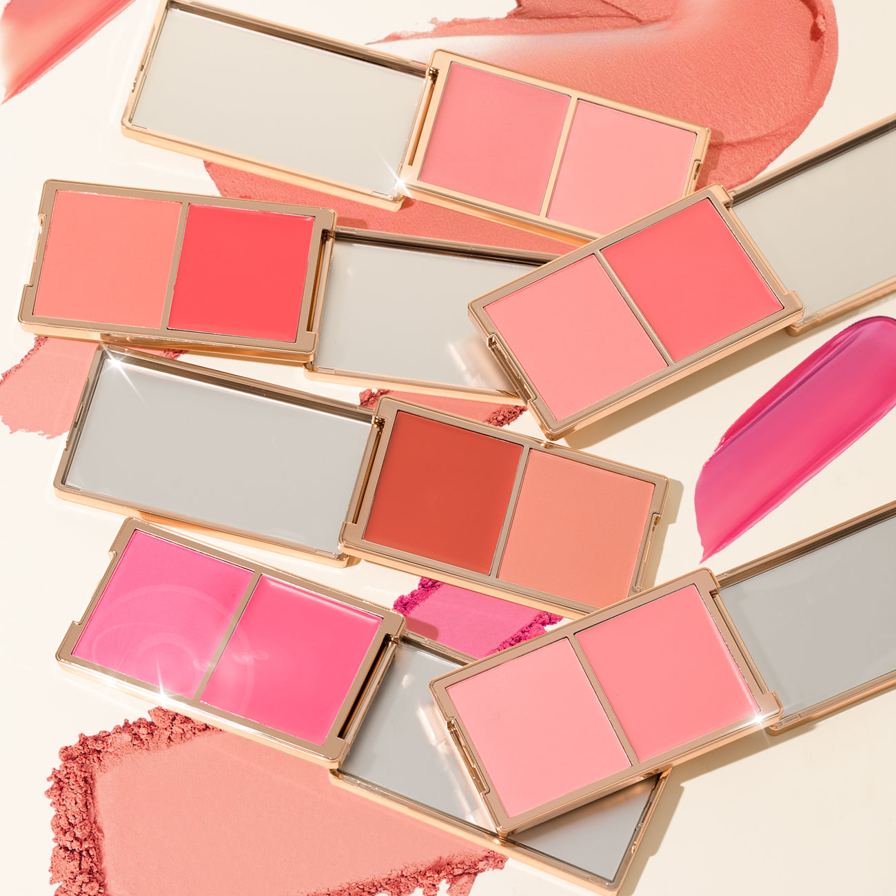 The cream melts seamlessly into the skin with a natural, dewy glow, while the powder sets everything in place with a blurred, airbrushed finish. Wear them alone for a subtle flush or layer them for a brighter, lifted look — the Cheek Duo lets you control the intensity.